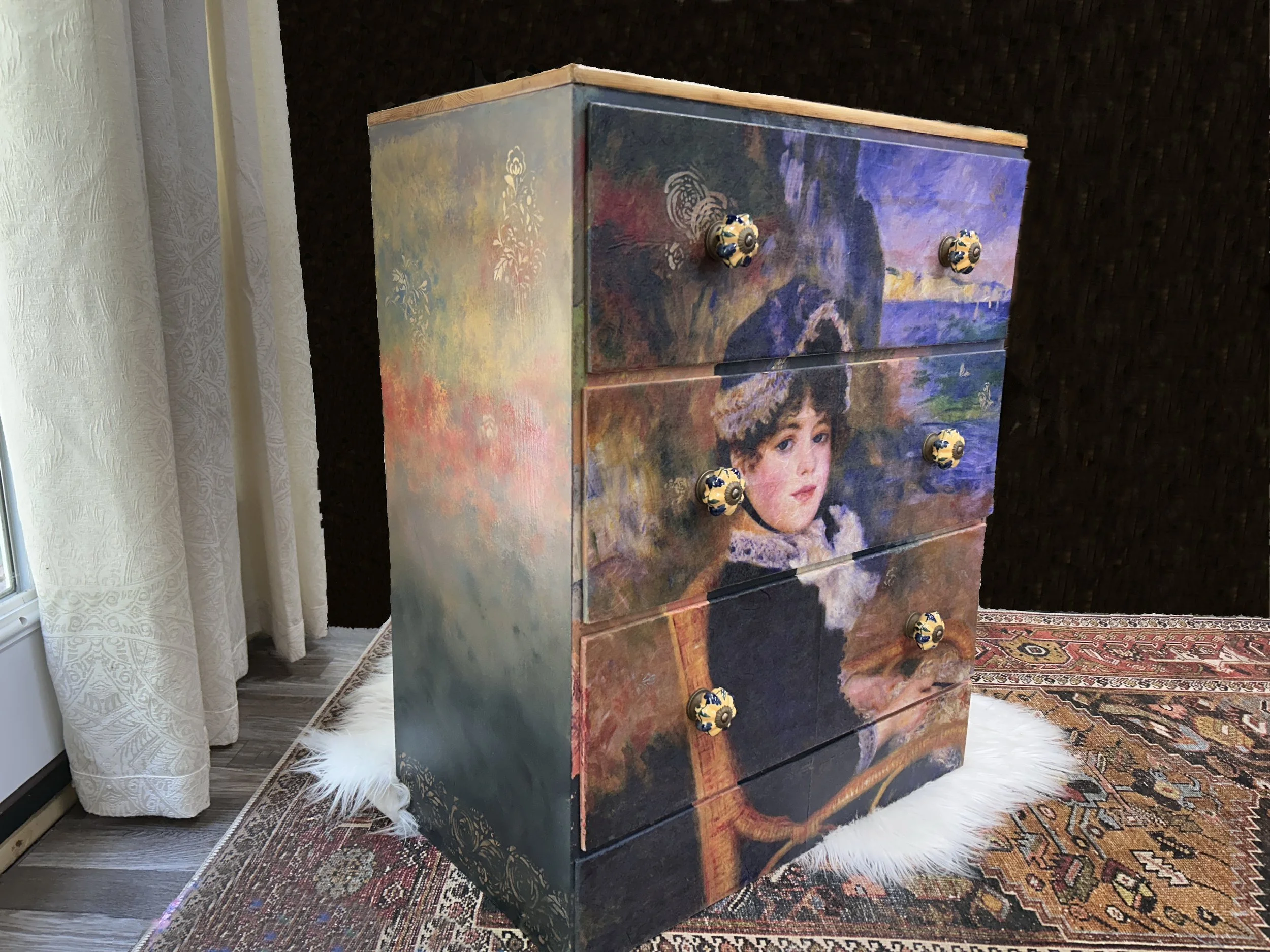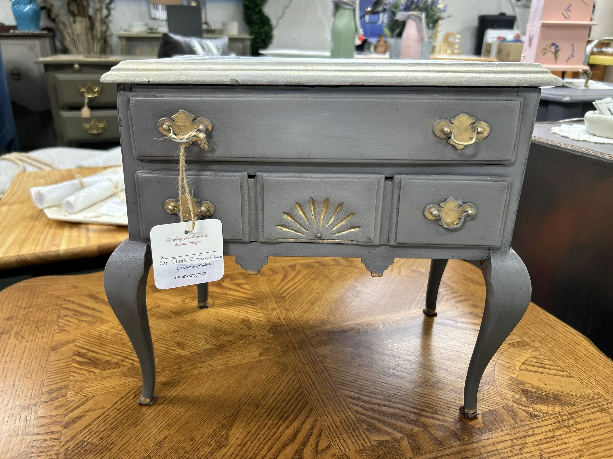 Categories: All Restored Furniture & Antiques Decor Original Canvas Art Functional Art: Art Designed Furniture Gallery All | Restored Furniture & Antiques | Decor | Original Canvas Art | Functional Art: Art Designed Furniture | Iced Tea with Lemon on Canvas $99.00 Add To Cart Added! Painted Sewing Box on Legs; Vintage $75.00 Add To Cart Added! SOLD: Mini Victorian-style Sofa Seating with Cabriole Legs Sale Price: $50.00 Original Price: $75.00 Sold out Sold Out Added! Early 1900's Art Nouveau Brass Polychrome Lamp; very possibly European $575.00 Add To Cart Added! Original Painting #18 $199.99 Add To Cart Added! Original Painting #90 $110.00 Add To Cart Added! Original Painting #288 $99.00 Add To Cart Added! Original Painting #645 $99.00 Add To Cart Added! Canvas Art Acrylic #228 $99.00 Add To Cart Added! Canvas Art Surrealism #176 $99.00 Add To Cart Added! Cherry Blossoms Canvas Art #75 $99.00 Add To Cart Added! Grammy High Chair $125.00 Add To Cart Added! Blanket Holder / Quilt Rack Vintage $75.00 Add To Cart Added! Primitive Secretary Refinished & Restored $325.00 Add To Cart Added! SOLD: Rocking Chair Sale Price: $45.00 Original Price: $90.00 Sold out Sold Out Added! Painted & Fringed Piano Stool with Claw Feet $150.00 Add To Cart Added! Petite Chest of Drawers $175.00 Add To Cart Added! Green Wash Blanket Rack $75.00 Add To Cart Added! SOLD: Ultra Feminine Jewelry Armoire $150.00 Sold out Sold Out Added! Set of Colorful Stools $150.00 Add To Cart Added! Throw Pillow $18.00 Add To Cart Added! Queen Anne Jewelry Box Sale Price: $25.00 Original Price: $55.00 Sale Add To Cart Added! SOLD: Ironstone Pitcher & Bowl $35.00 Sold out Sold Out Added! Mid-century Modern (MCM) Side or Coffee Table $400.00 Add To Cart Added! SOLD: Vintage Dial Desktop Telephone $18.00 Sold out Sold Out Added! Set of Eight (8) Rosenthal Sanssouci Gold-rimmed Bread/Dessert Plates 7-inch $150.00 Add To Cart Added! Jewelry Armoire $195.00 Add To Cart Added! Low-boy Console Desk $350.00 Add To Cart Added! Antique Nursing or Sewing Rocker Sale Price: $50.00 Original Price: $150.00 Sale Add To Cart Added! Eastlake China Hutch $750.00 Add To Cart Added! Antique Child's Chair in Oak; Paris Manufacturing Maine $175.00 Add To Cart Added! Vintage Telephone Table $279.00 Add To Cart Added! Dainty Vanity with Upholstered Bench $550.00 Add To Cart Added! Mahogany Hunt Console $375.00 Add To Cart Added!